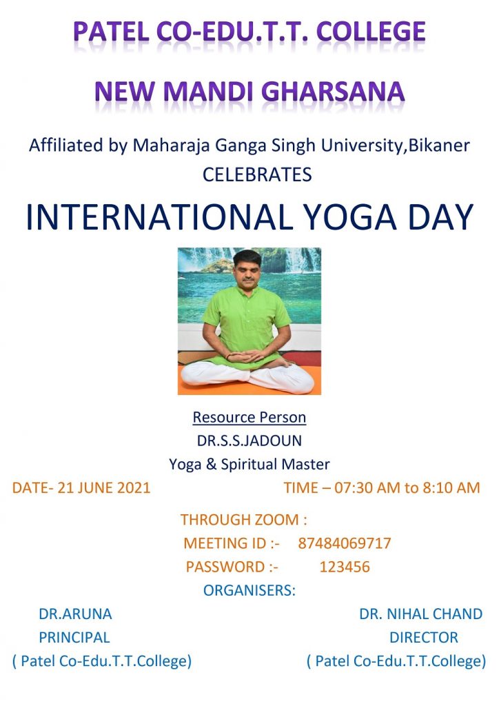 Topic: INTERNATIONAL YOGA DAY(Patel Co-Edu.T.T.College New Mandi Gharsana) VK PANDEY—-